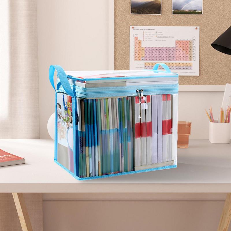 Transparent Books Storage Bag Handle Stackable Document Collection Container Foldable Waterproof Tutorial Bag Storage Bag