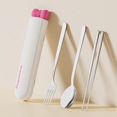 Portable Cutlery Set With Case Camping Kawaii Travel Student Tableware for Kids Stainless Steel Spoon Fork Chopsticks With Box