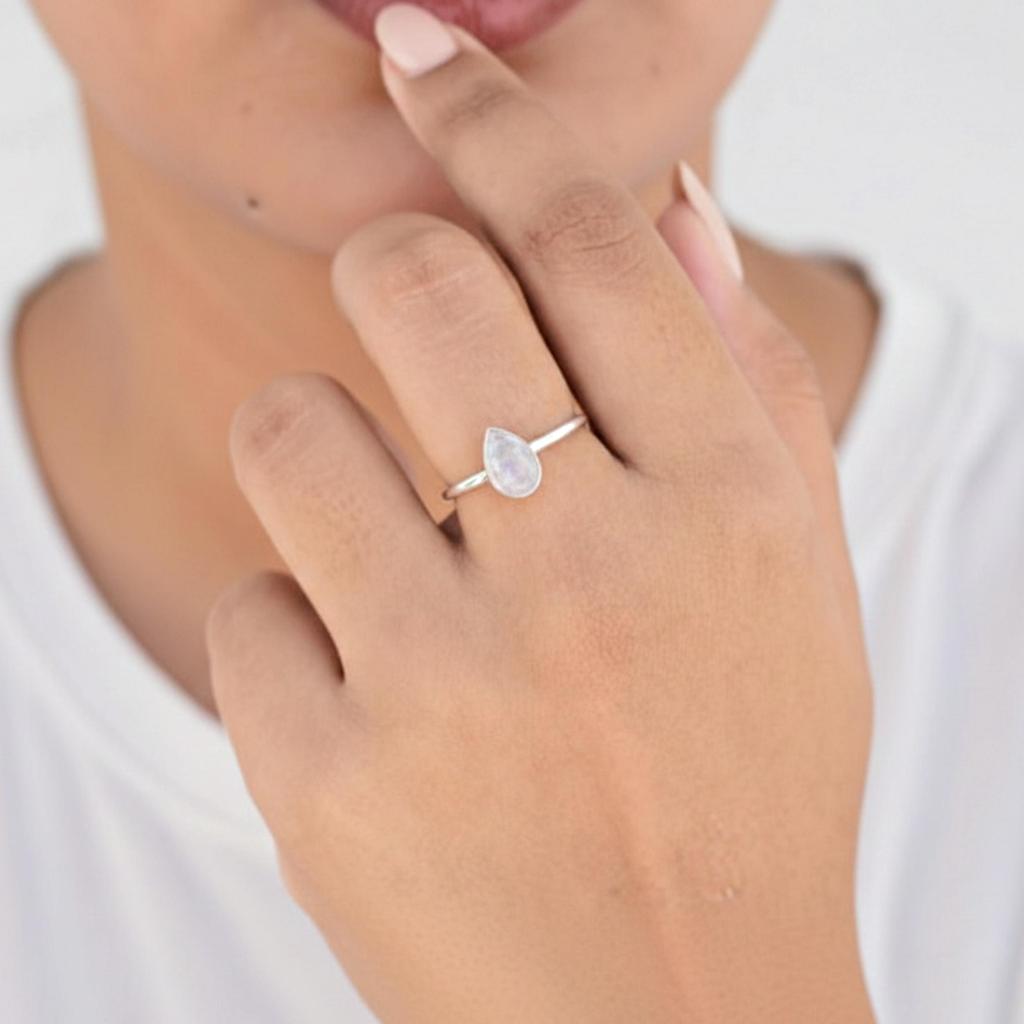 Rainbow Moonstone Statement Ring, 925 Sterling Silver, Minimalist Handmade Pear Shape Gemstone Ring
