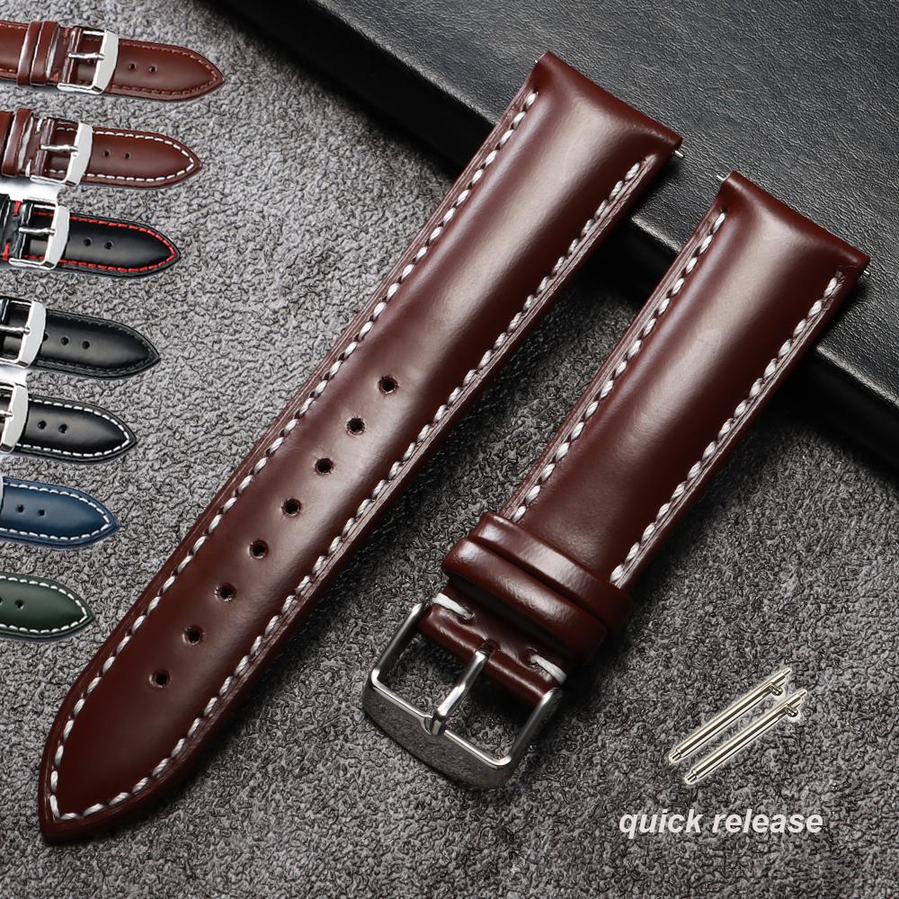 Watchband 20 22mm Vintage Polished Cowhide Quick Release Stitching Watch Strap for Rolex for Omega Bracelet Universal Wristband