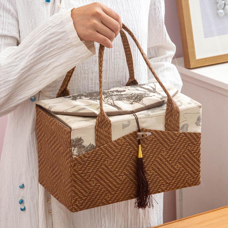 Light Luxury Rattan Woven Hand-held Wedding Gift Boxes Spring Festival Wedding Tea Wedding Souvenirs Birthday Gift Empty Box