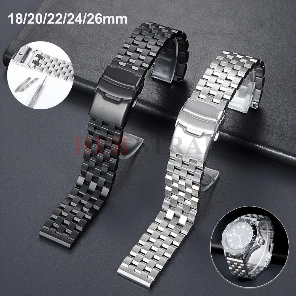 18mm 20mm 22mm 24mm 26mm Universal Watch Strap Stainless Steel Watch Band Flat Interface for Men Women Folding Buckle Wristbelts