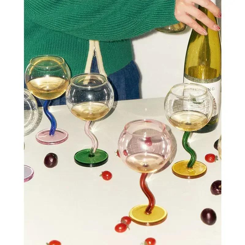 1pcs Multicolored Red Wine Glass Glass Cup with Curved Bottom Design Colorful Transparent Large Belly Red Wine Glass