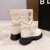 Boots Women's Spring and Autumn Short Boots Platform Pants Boots Thick Heel Vintage Martin Boots Maillard Pile Boots Western Cowboy Boots