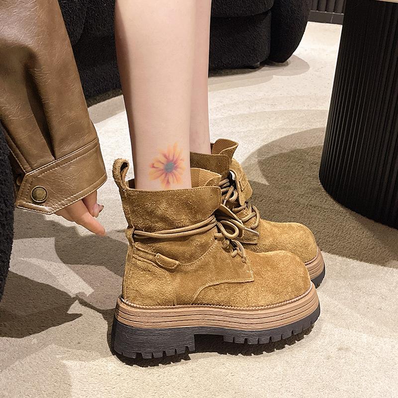 Retro Matte Leather Martin Boots Women's Thick Soles 2025 New Versatile British Style Straps Heightening Tooling Boots Short Boots Tide