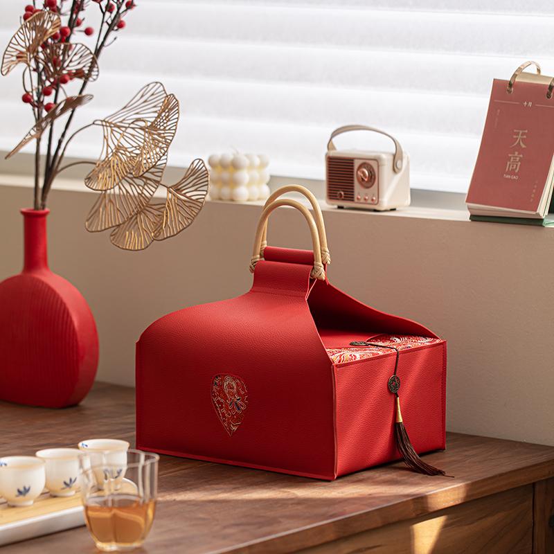 Premium Tea Set Birthday Gift Boxes Heart Shaped Leather Bamboo Handle Portable Storage Box Removable Storage Tea Set Empty Box