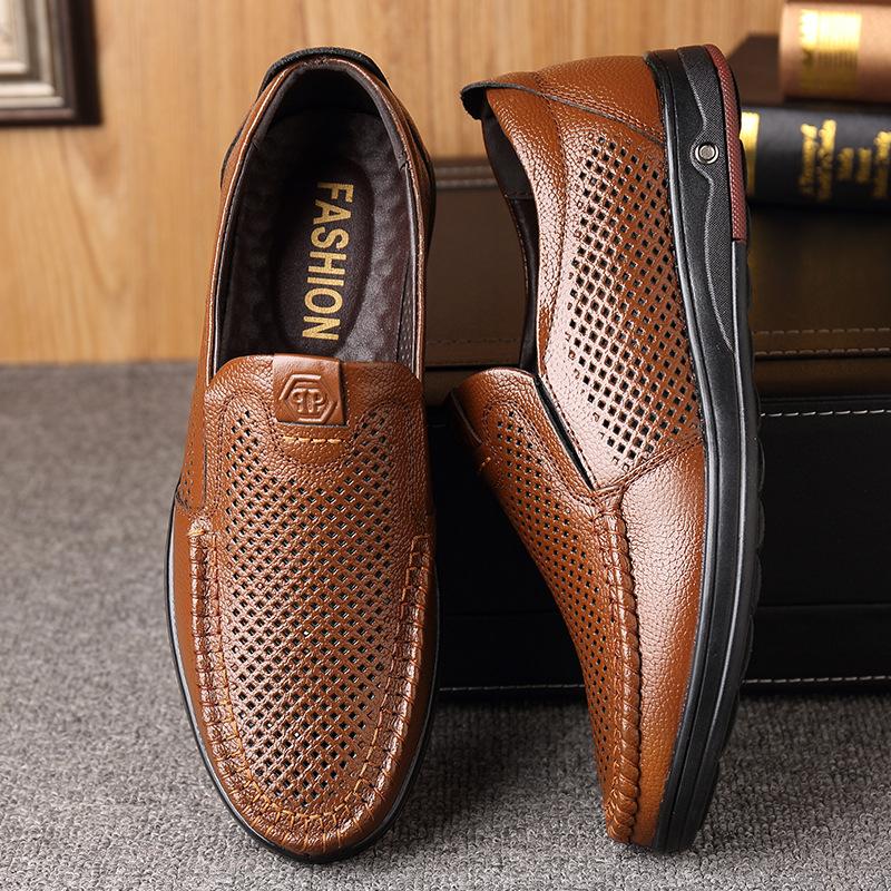 Men's Shoes Large Size Breathable Hollow Youth Shoes Business Casual Non-slip Doudou Shoes Soft Sole Wear-resistant Solid Color Dress