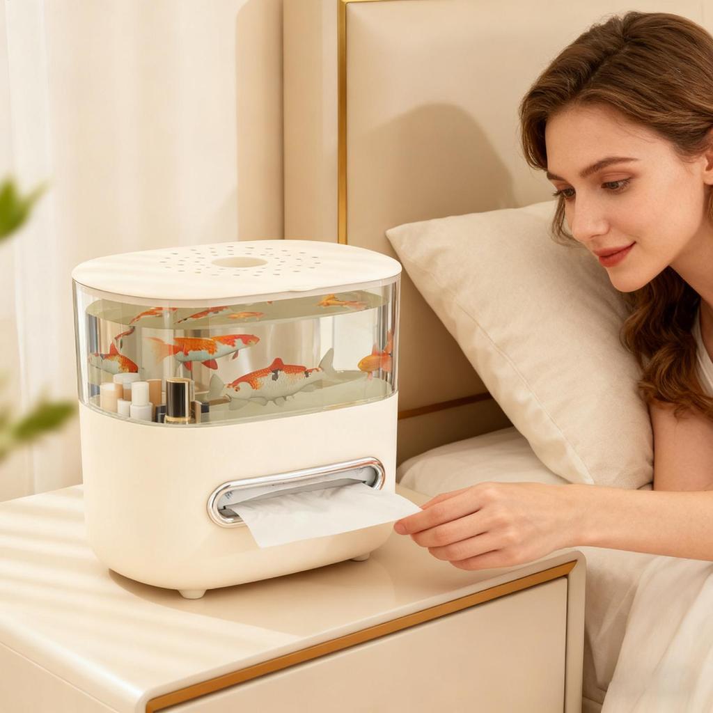 Tissue Box Cover Non-Slip Fish Tank With Top Lid Tissue Cover Small Fish Tank For Living Room Bedroom Kitchen Office Apartment