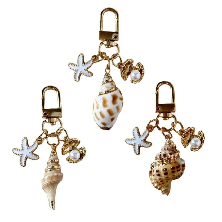 Inspires by the sea beauty, this conch pearls keychain combines natural seashells and alloy for a stylish, artistic accessory, offering more sustainabilities than plastic alternative.