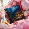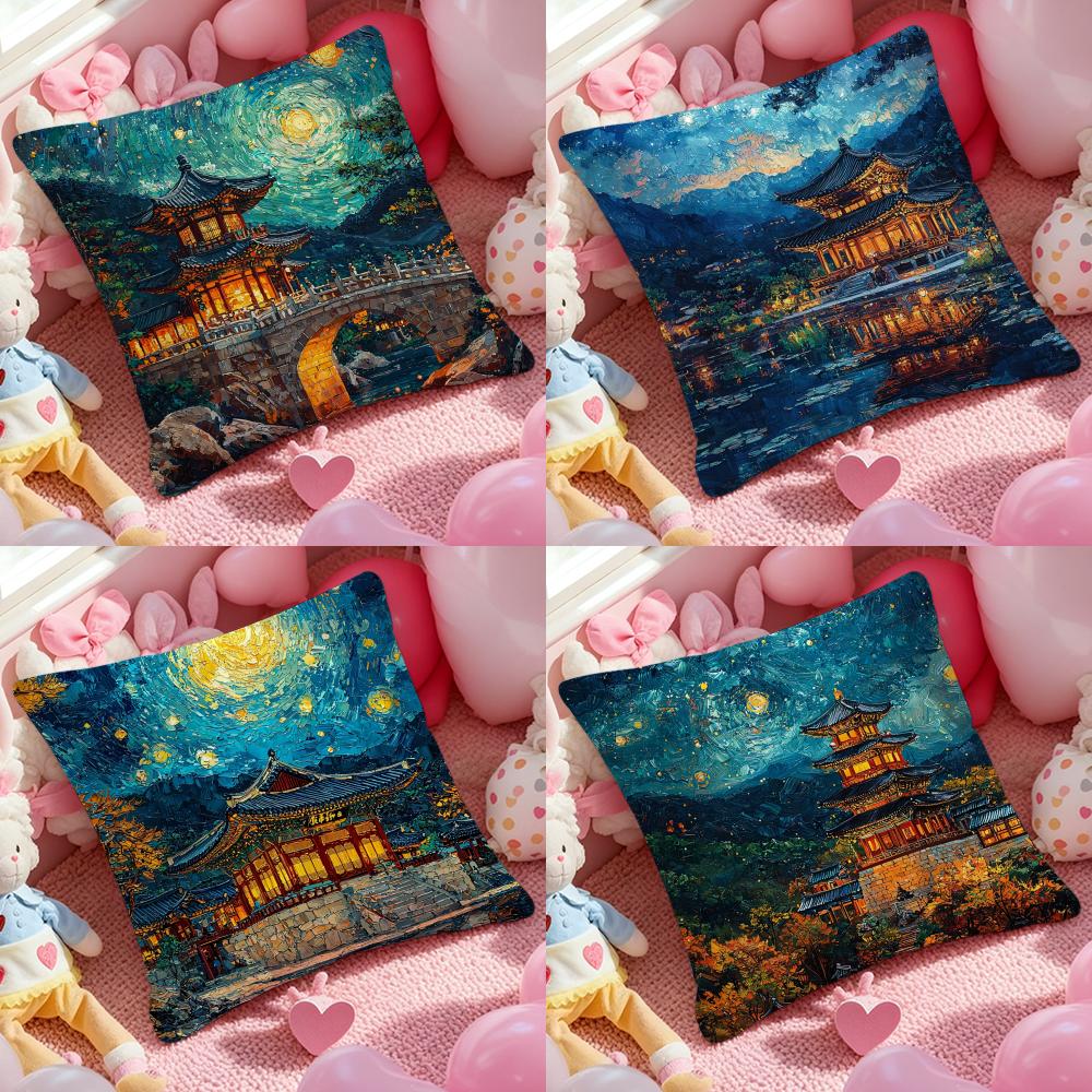Korea Foguo Temple Cushion Cover Pattern Printed Pillowcase for Living Room Sofa Cushion Cover & Bedroom Decor