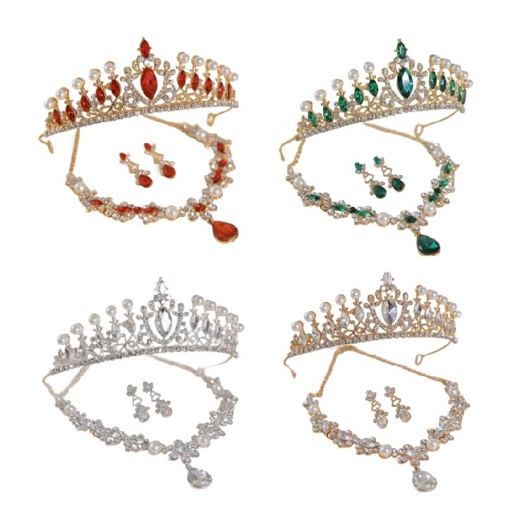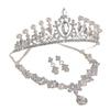 Elegant Evening Accessories Set Crystal Hair Crown Drop Earrings Pendant Necklace Wedding Headpiece for Daily Party