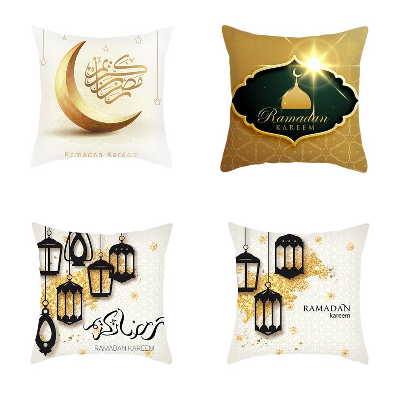 Home Decor Ramadan Kareem Lantern & Crescent Pillow Covers Pattern Cushion Cover Suitable For Sofa Bedroom Car Pillow Cover