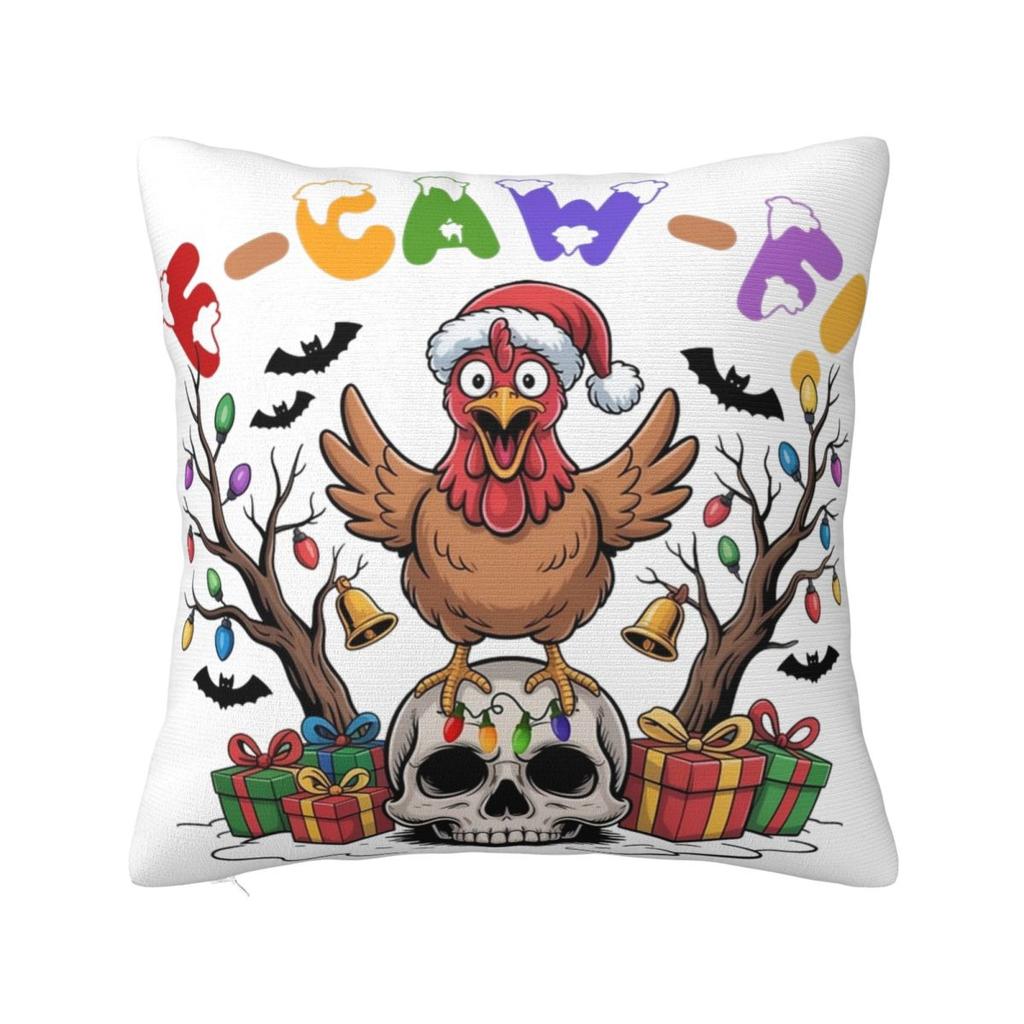 Christmas F-Caw-F Chicken Pillowcase Printed Polyester Cushion Cover Decorations Throw Pillow Case Cover Home Square 18''