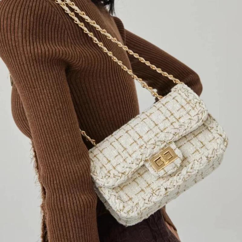 Spring and Autumn New Women's Underarm Bag Woolen Chain Bag Premium Single Shoulder Crossbody Bag Small Square Bag