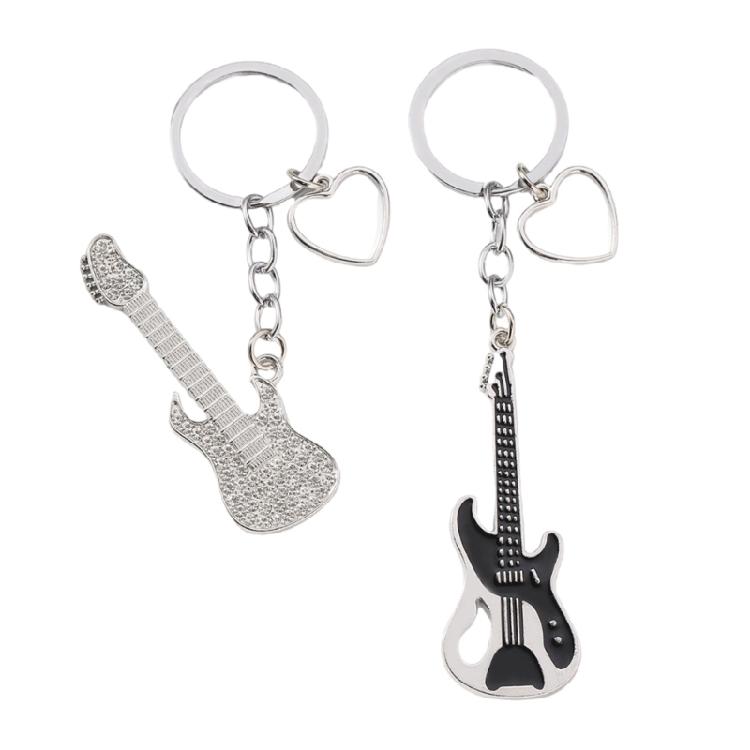 Guitar Pendant Keychain with Shimmering Stones Metal Keyring Sweet Cool Girls Key Chain Lightweight Jewelry for Bag