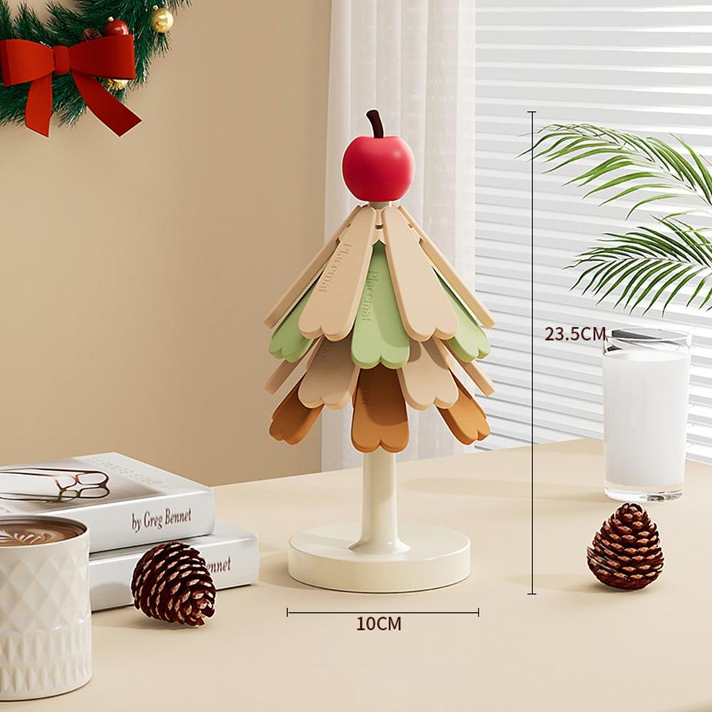 Foldable Wooden Tree Trivet Heat-insulating Decoration Christmas Tree Trivets Set with Stand Set of 3/4 Cup Coaster Set