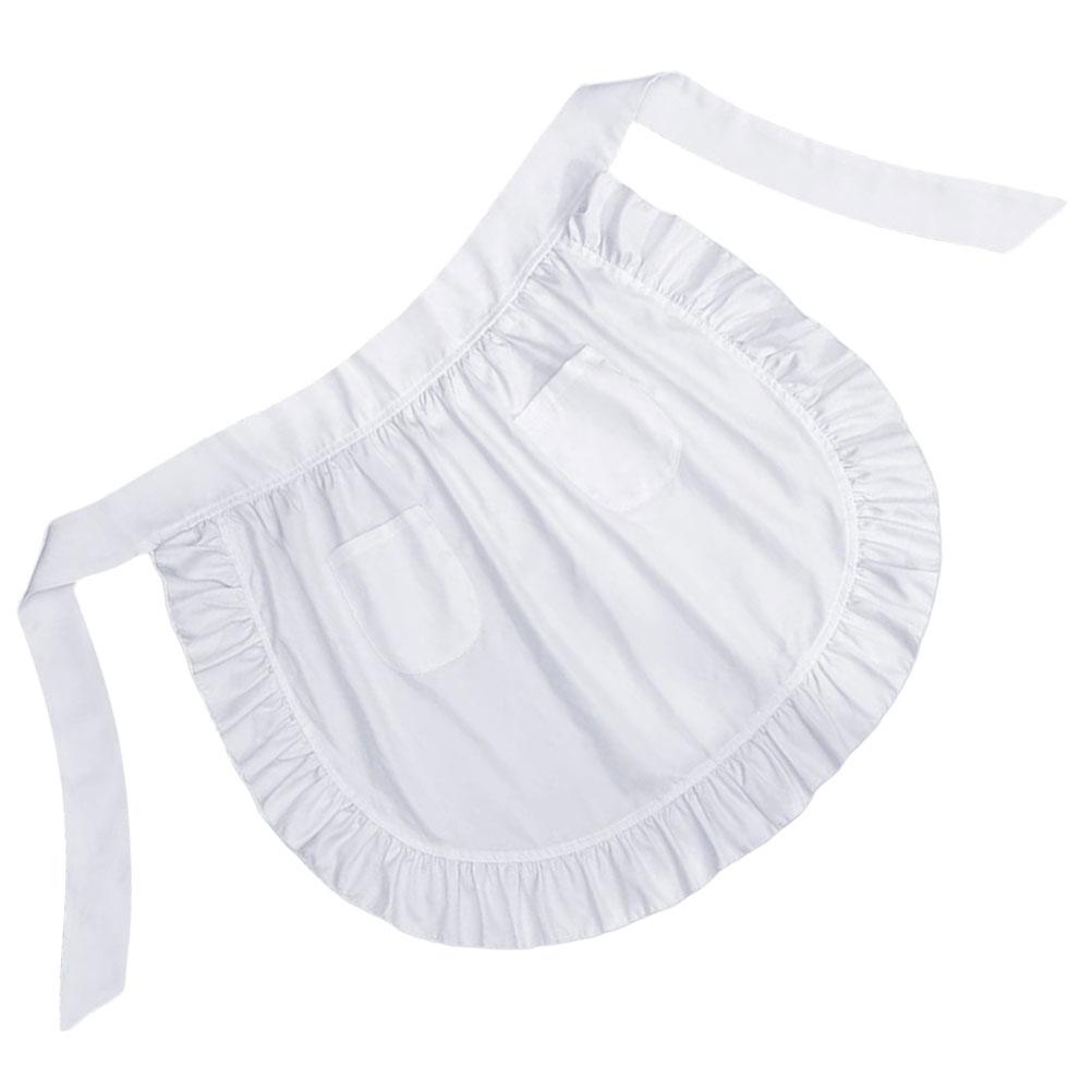 European Style White Maid Waist Apron Half Apron with 2 Pockets Soft Breathable for Kitchen Cooking Baking Serving