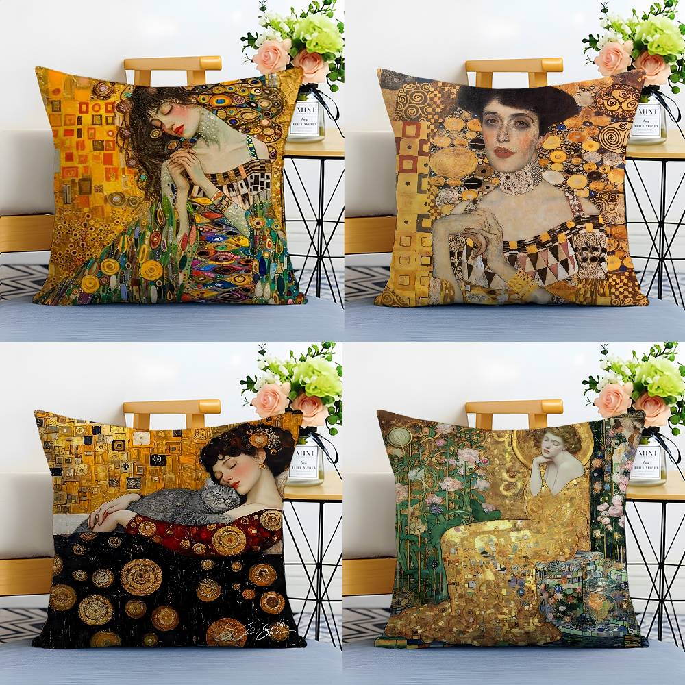 Gustav Klimt Oil Painting Pillow Case Anti-dustmite Pillowcase Invisible Zipper Silky Sofa Cushion Cover