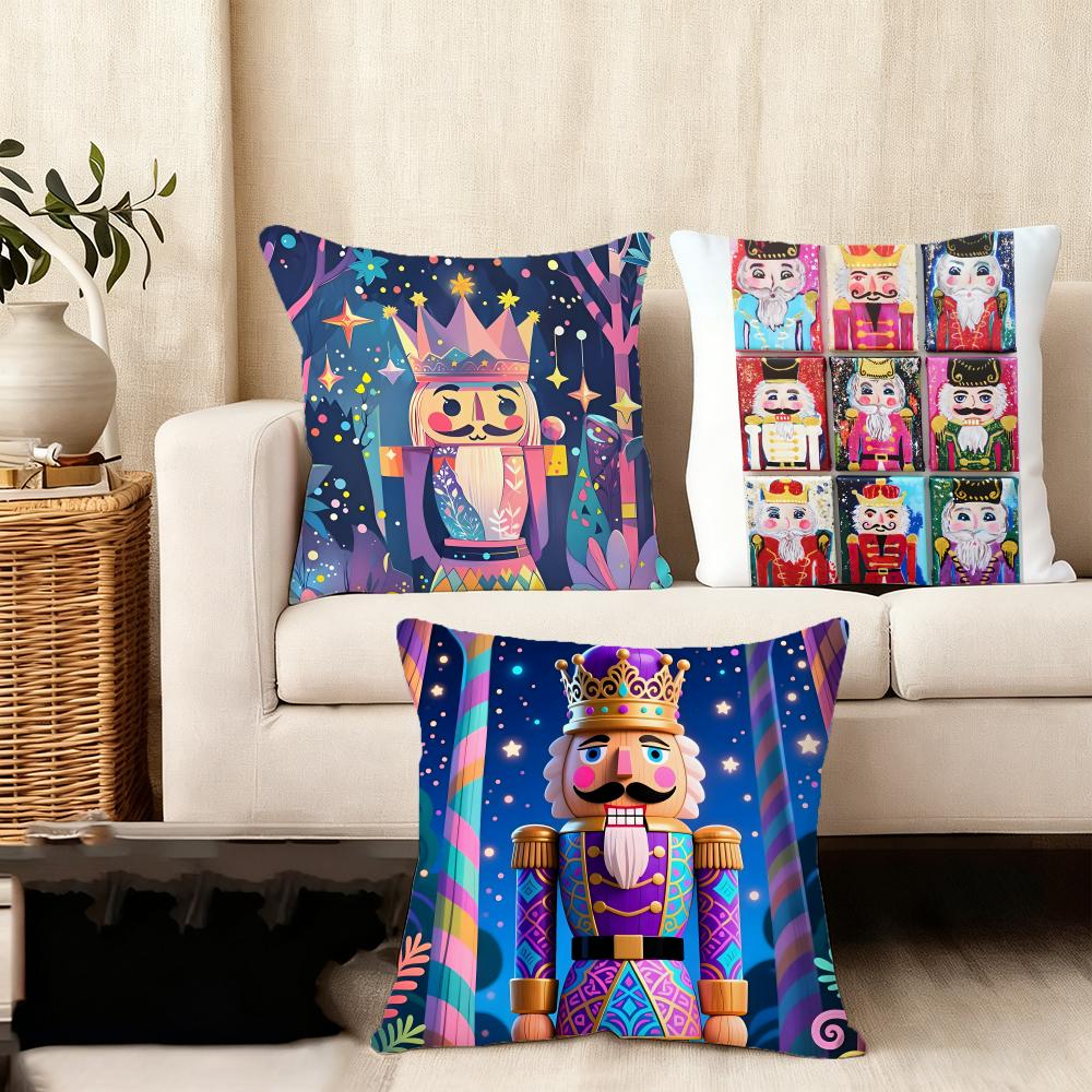 Nutcracker Cartoon Cushion Cover Silky Short Plush Home Sofa Cushion Cover - Invisible Zipper Home Decoration
