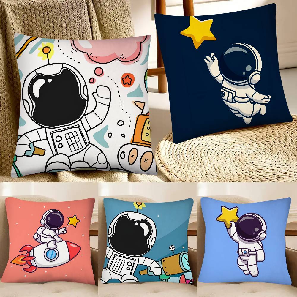 Cartoon Astronaut Rocket Spaceship Pillow Case Fashion Square Pillowcase Bedroom Sofa Room Ins Decoration Leisure