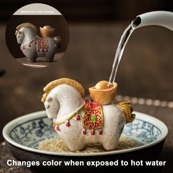 Money Horse Tea Pet with Thermal Color Change Resin Tea Table Ornament with Wealth Blessing Traditional Chinese Desk Decor