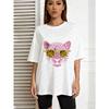 Vintage Oversized T-Shirt with Pink Leopard Head & Leopard-Print Sunglasses Print – Edgy Color-Block Graphic Top