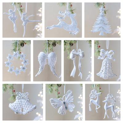White Plastic Christmas Ornaments Glitter Deer Star Bell Xmas Tree Decorations Hanging Pendants for Home Christmas Decor