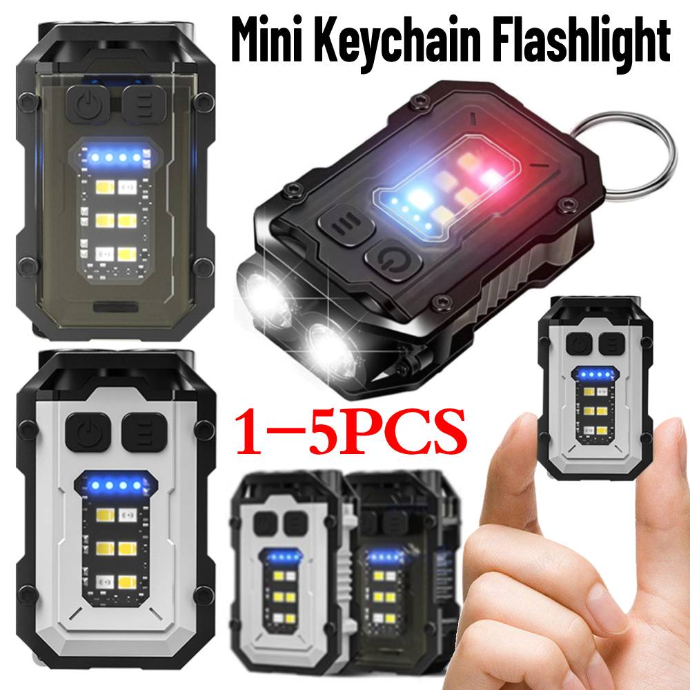 High Bright Mini Keychain Flashlight Powerful Cap Clip Light USB Rechargeable Power Display LED Work Light for Emergency Camping
