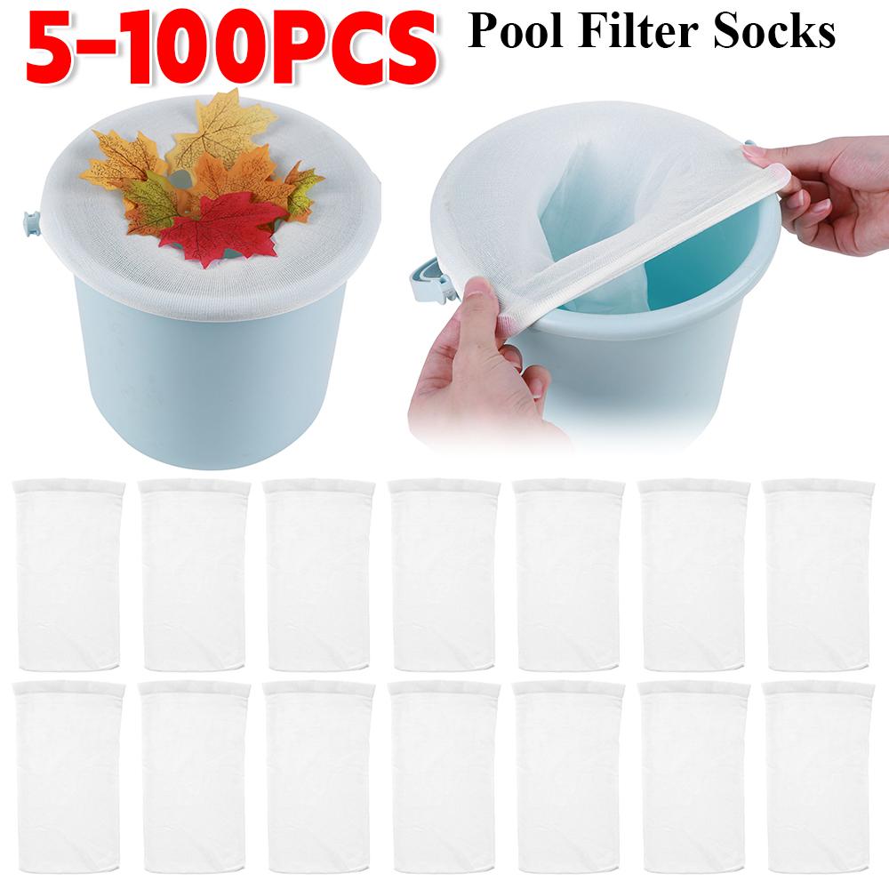100-5PCS Pool Skimmer Socks Swimming Pool Filter Socks Basket Elastic Nylon Mesh Debris Leaves Storage Socks Pool Accessories