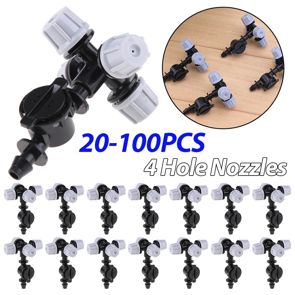 20/100pcs Agricultura Sprinklers Four Outlets Atomizing Misting Sprayer High Pressure for Outdoor Misting Cooling System