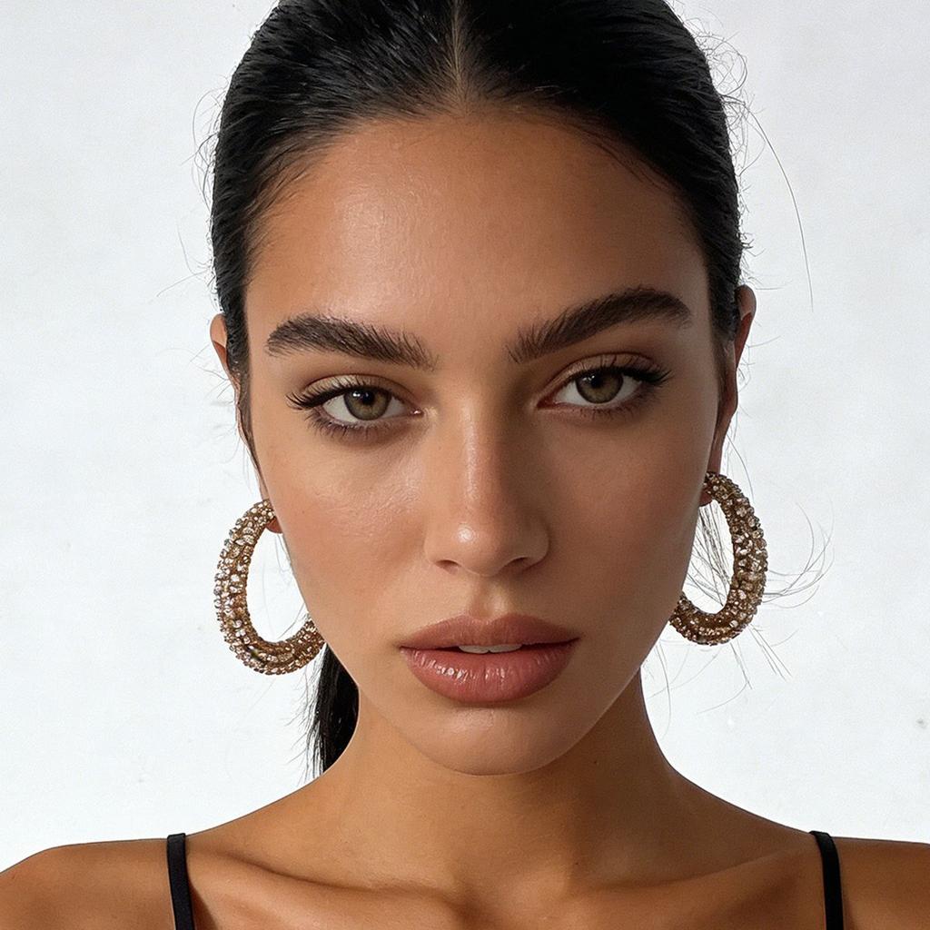 Exquisite Light Luxury High-end Temperament Geometric Full Diamond Curved C-ring Stud Earrings Versatile Super Flash Earrings Wholesale