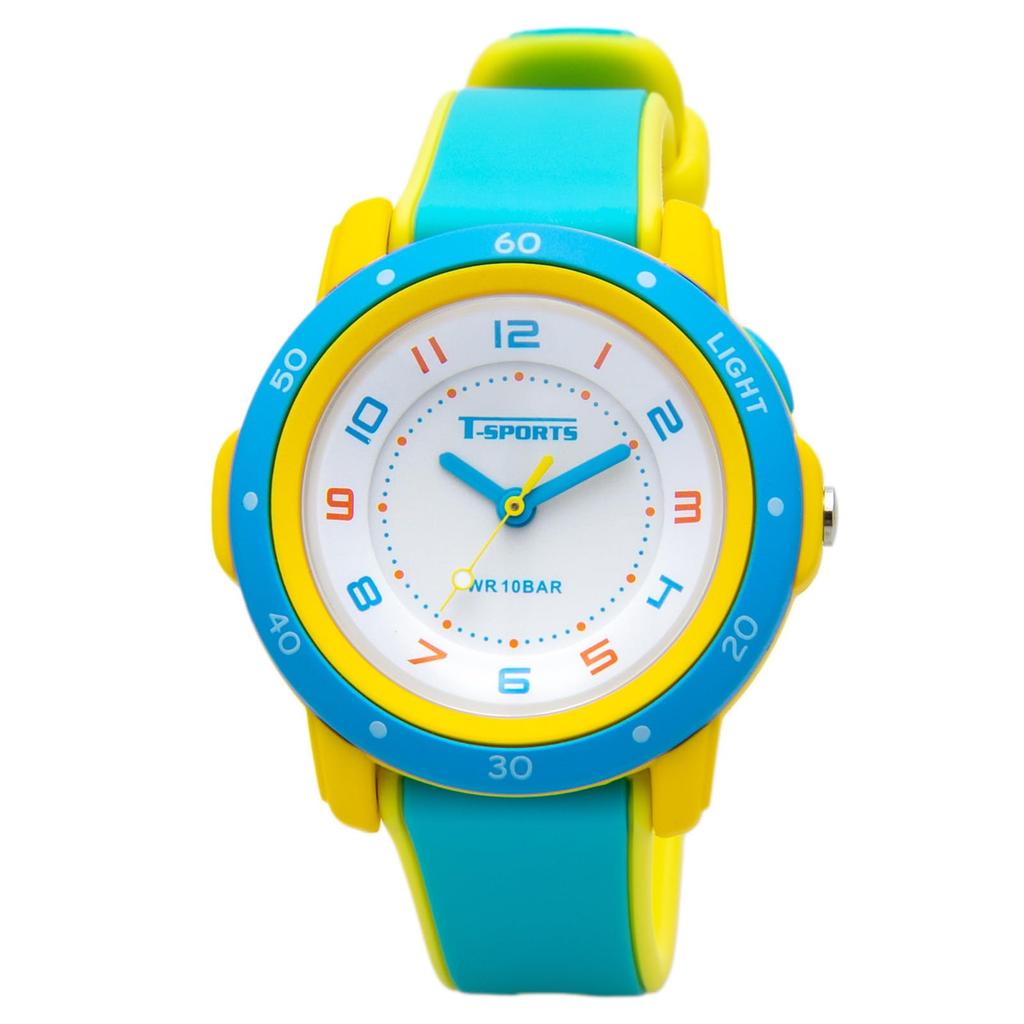 Klefer Children's Analog Watch, 10 ATM Water Resistance, EL Light, Multi-Function, Cute, Simple Design with Urethane Strap, Blue, T-SPORTS, Kids