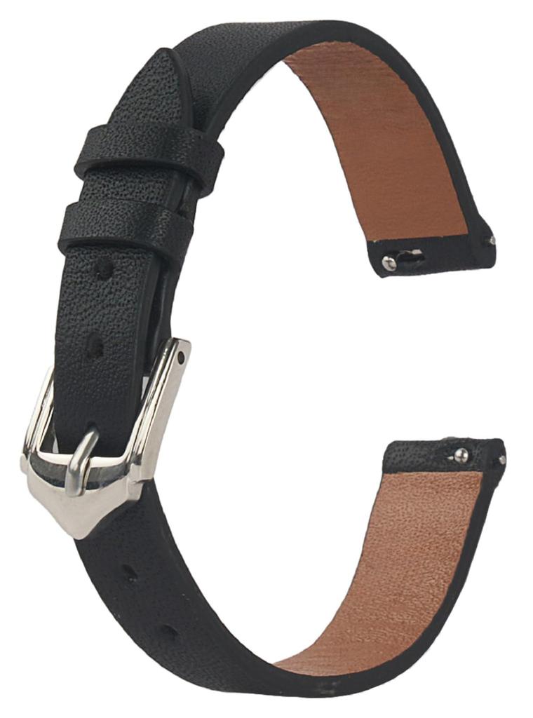 Vinacreations Black 12mm Genuine Cowhide Leather Watch Strap with Quick Release Spring Bars, Women's Calf Leather Replacement Watch Band with Wrist