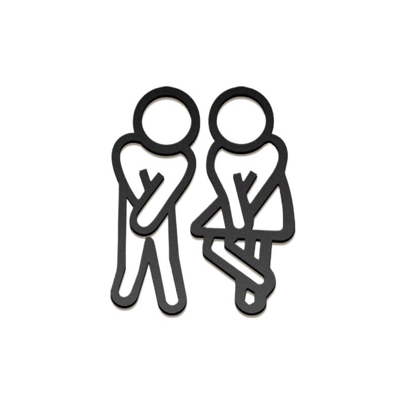 2Pcs/set 2D Flat Funny Restroom Signs Black Plastic Men Women Toilet Signage Wall Sticker Door Decor For Restaurant Hotel Cafe