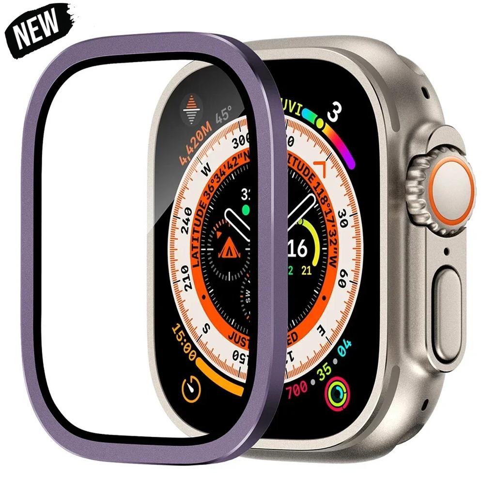 Screen Protector For Apple Watch Band Ultra 49mm Tempered Glass Anti-Scratch Glare HD Full Film Metal Bumper iWatch Ultra 49mm
