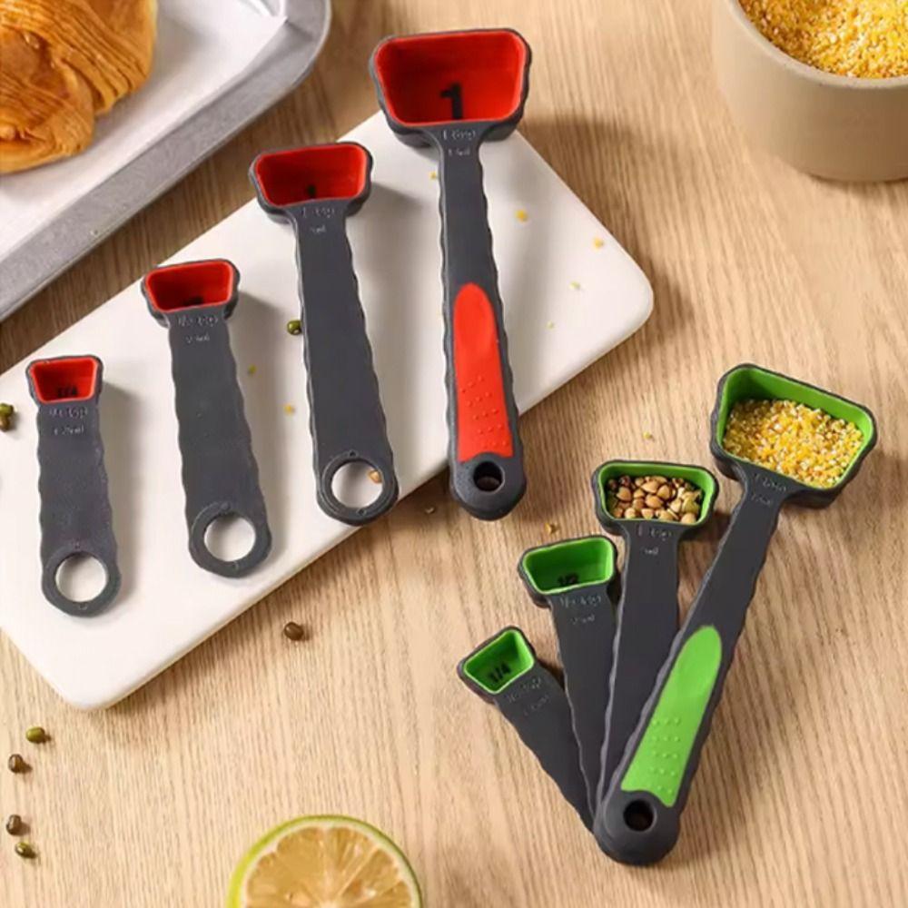 Measuring Spoon:1=14.4*4.6*2 cm(5.67*1.81*0.79 in),1/2=11.4*3.5*2 cm(4.49*1.38*0.79 in),1/3=9.4*2.6*2 cm(3.70*1.02*0.79 in),1/4=7.4*2.1*2 cm(2.91*0.83*0.79 in).