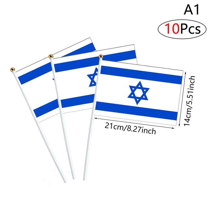 10Pcs Israel National Small Hand Held Waving Flag With Flagpole Car Window Flag Three Sizes Flag Indoor Outdoor Home Decor