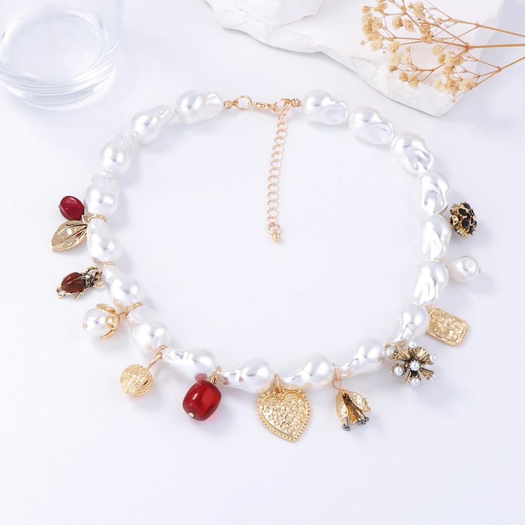 Baroque Simple and Fashionable Imitation Pearl Love Geometry Pendant Daily Wear Women's Leisure Necklace