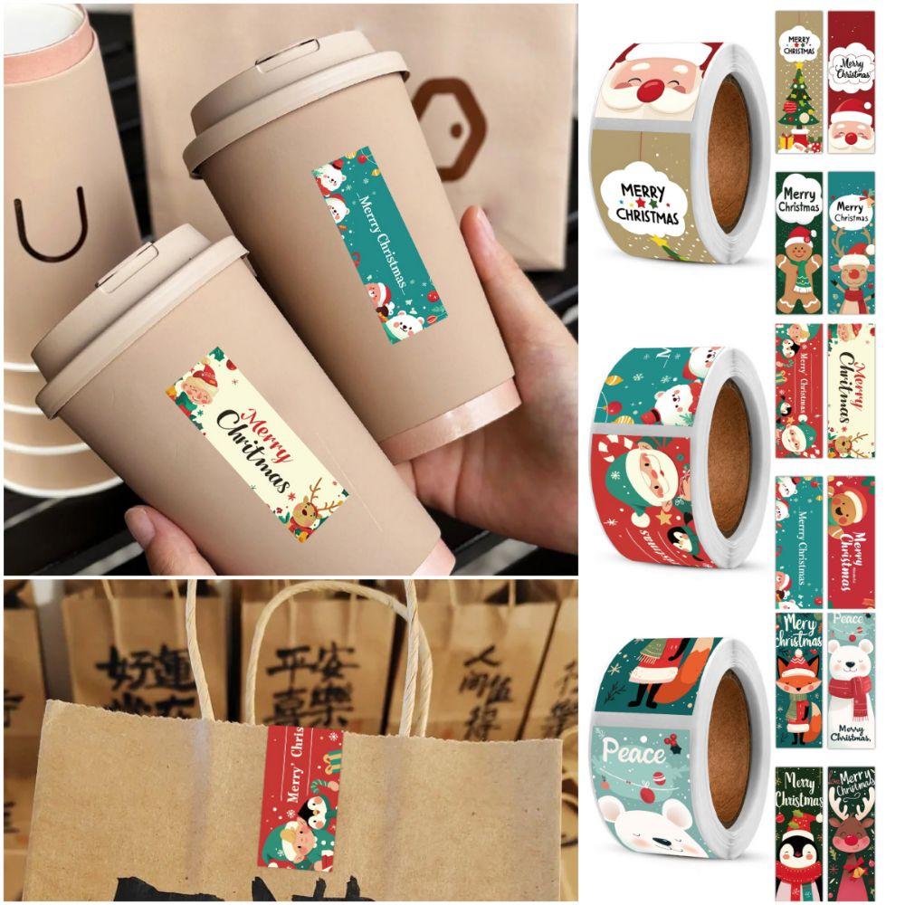 120PCS Multicolor Merry Christmas Stickers Mixed Pattern Cartoon Santa Snowman Packaging Decals Xmas Tree Deer