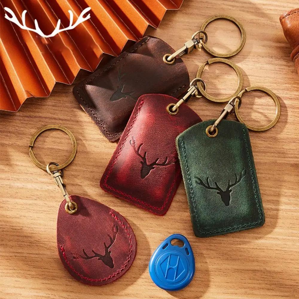 High Quality Leather Access Card Case Fingerprint-proof Anti-fall Key Tag Ring Anti-lost Accessories Access Tags Cover Universal