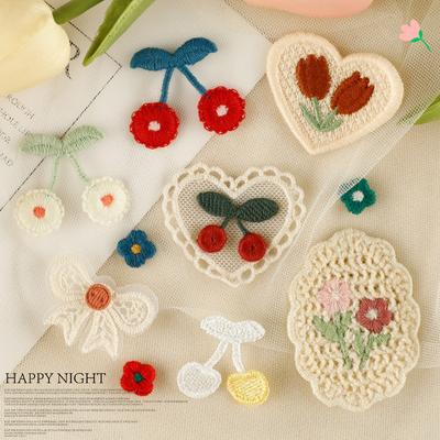 Original Embroidery Label Hair Accessories Accessories Cherry Lace Embroidery Sticker Diy Patch Clothing Accessories Cloth Label Cloth Sticker