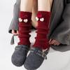 New Red Color Leg Warmers Thickened Bow Middle Tube Socks Harajuku Knitted Hosiery Autumn and Winter