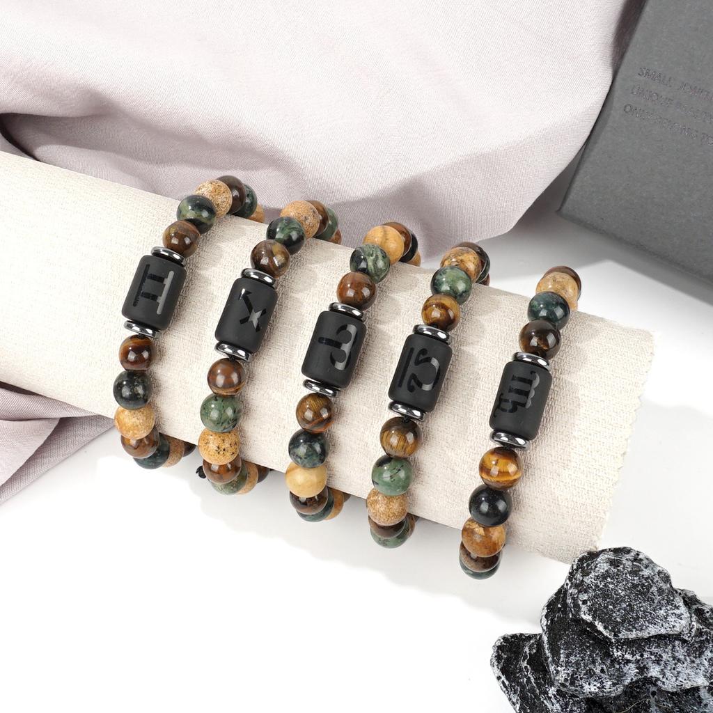 Vintage Zodiac Bracelet for Men 8mm Natural Black Onyx Tiger Eye Stone Star Sign Constellation Friendship Prayer Blessing Bracelet Gifts