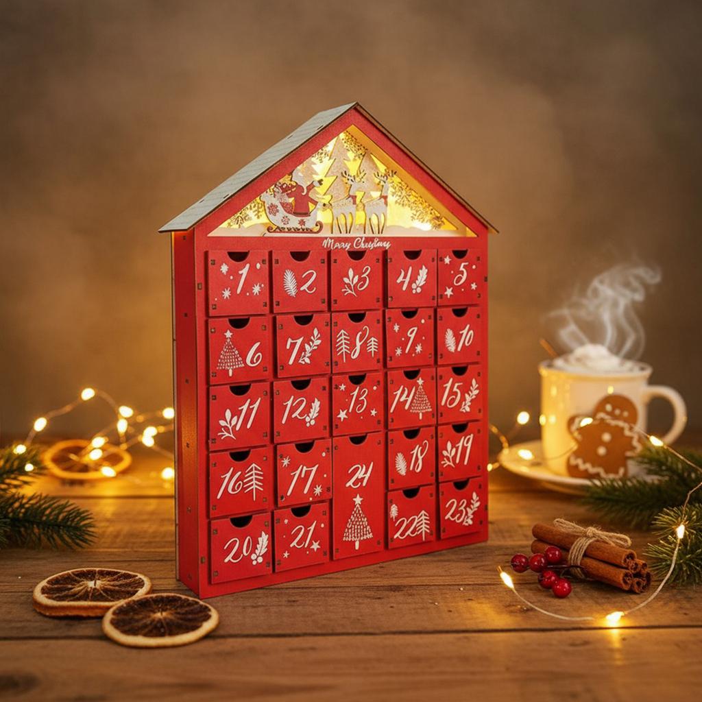 Countdown To Christmas House Shaped Countdown Calendar with 24 Drawers Refillable Wooden Advent for Kids Home Decoration
