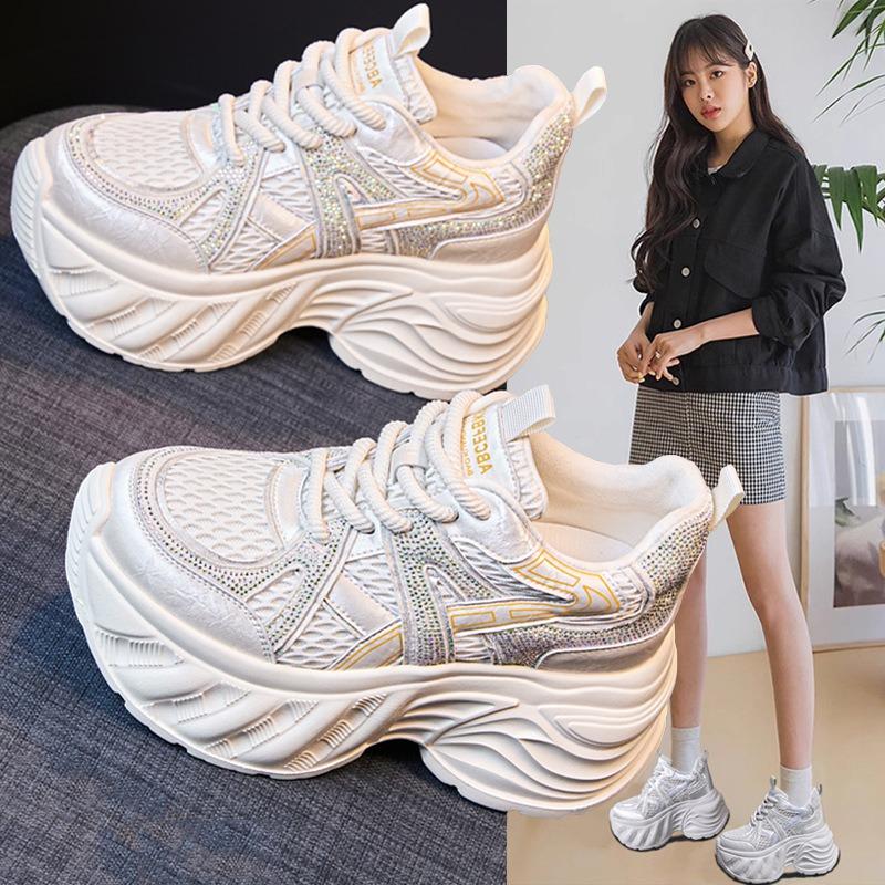 Inner Heightening Dad Shoes Women's Shoes New Explosive Autumn Breathable Mesh Thick-soled Muffin Sports and Leisure Little White Shoes