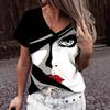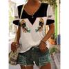 Summer Fashionable High-quality Striped Creative Pattern Women's V-neck Short Sleeved T-shirt Women's Breathable Loose T-shirt