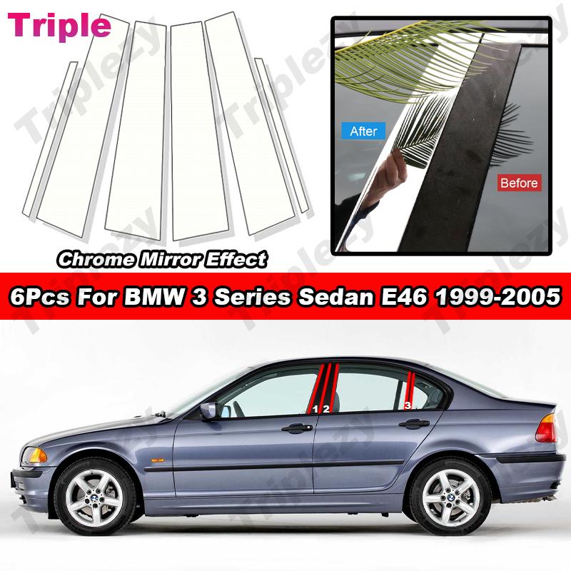 Glossy Chrome Car Door Center Column Window Middle B C Pillar Post Cover Trim Mirror Effect For BMW 3 Series Sedan E46 1999-2005