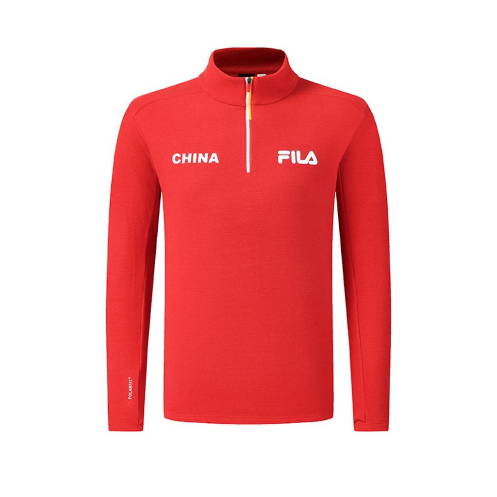 Fila Explore Minimalist Personality Sports Training Outdoor Mountain Comfortable Ribbed Fleece Long Sleeve T-Shirt Men Tops Hot-Red A11M617214FRD