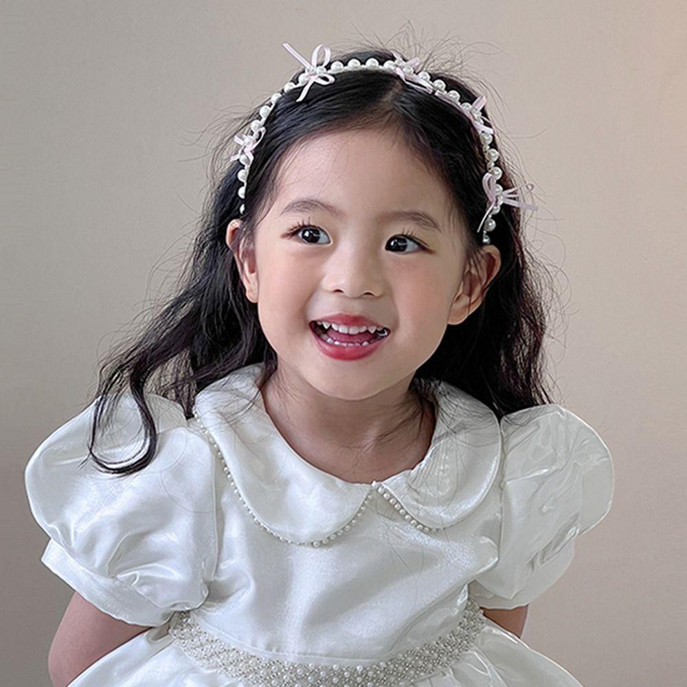 White Princess Hair Hoop Korean Children Headband New Pearl Bow Hairbands for Kids