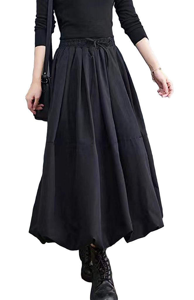 [Casual yet cute] This maxi skirt is made of a soft, flowing fabric for a voluminous, flowing silhouette. This long skirt is casual yet cute, allowing for a variety of styles. [Flare-out silhouette] The A-line design is simple yet distinctive. It perfectly covers your lower body, from your stomach to your hips and thighs. [Exceptional versatility] It can be worn with a dressy look, casual with a sweatshirt, or even with a girly top for a cute look. Pair it with a short outerwear, tailored jacket, or biker jacket for a skirt-focused look. [Recommended for all ages] The elastic waistband makes it comfortable to wear. The slimming design creates a flattering waistline, allowing you to tuck in your top for a beautiful look. Perfect for everyday wear, commuting to work or school, dates, travel, and other outings. [Color] Black, Green (2 colors) [Size] L/XL/2XL/3XL [Material] Polyester [Lining] Yes [Pockets] Yes [Size Details] Total Length/Waist/Hip/Hem Width (cm) L: 80/60-84/130/67 XL: 81/65-89/1